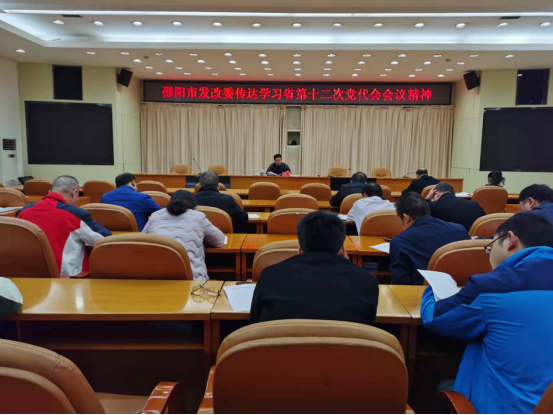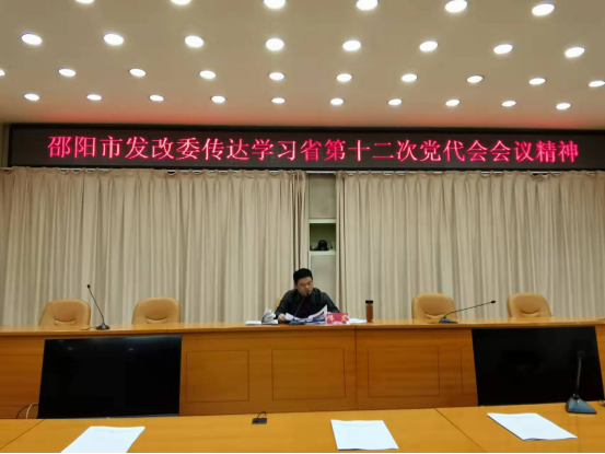11月29日下午,邵阳市发改委在市政府机关六楼会议室召开会议,传达学习贯彻中国共产党湖南省第十二次代表大会精神和全市传达学习省第十二次党代会精神会议,就全市发改系统学习宣传贯彻工作进行安排部署。市发改委机关全体干部和二级机构单位负责人参加会议。