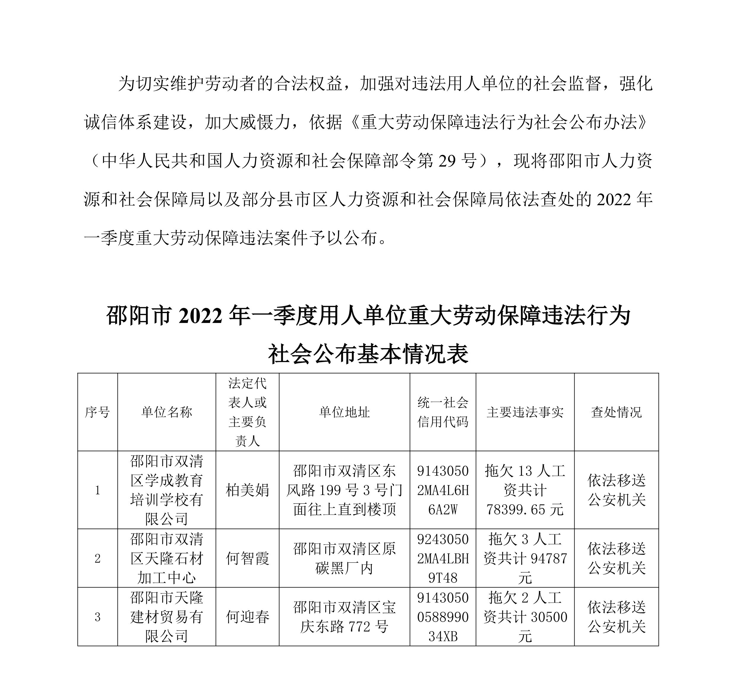 365体育钱提不出来了_365彩票app老版_日博best365下拉飞机XLCOKK2022年一季度重大劳动保障违法行为社会公布